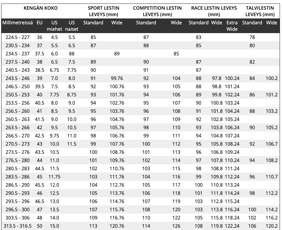 - MXZ 304 mallissa korkeampi tila varpaille