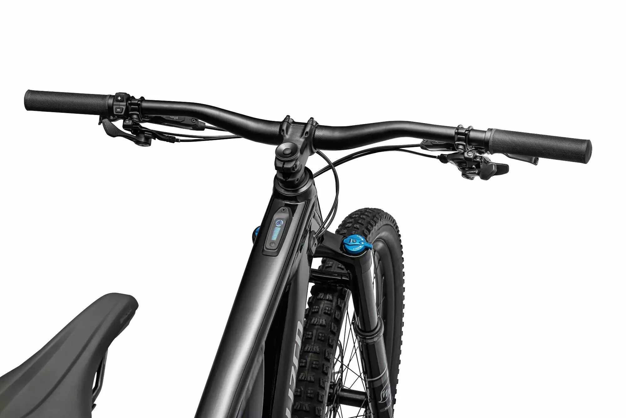 - Levon Turbo Connect Unit (tai ”TCU”) on enemmän kuin ”On-Off”-painike – se on pyörän aivot. TCU näyttää akun varaustason ja tehoavustustilan. Se kommunikoi myös ANT+/Bluetooth®:n kautta lisävarusteena saatavan lisänäytön kanssa, jolloin se näyttää vielä enemmän tietoa päivän ajosta.