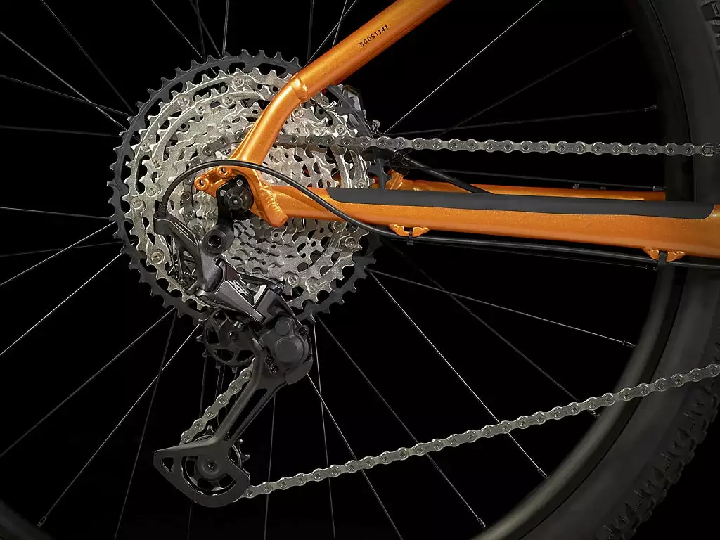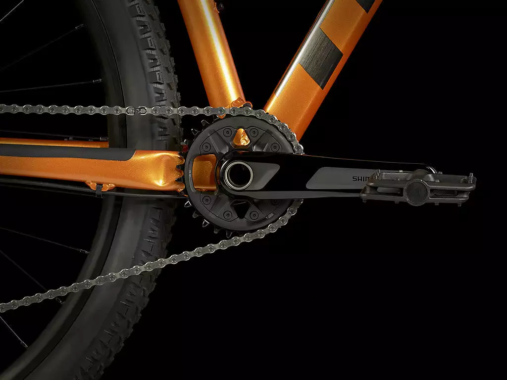 - Äänetöntä ajoa ei voita mikään: takavaihtajan kiristyskytkin estää ketjun heilumisen ja iskeytymisen jopa hyvin epätasaisessa maastossa